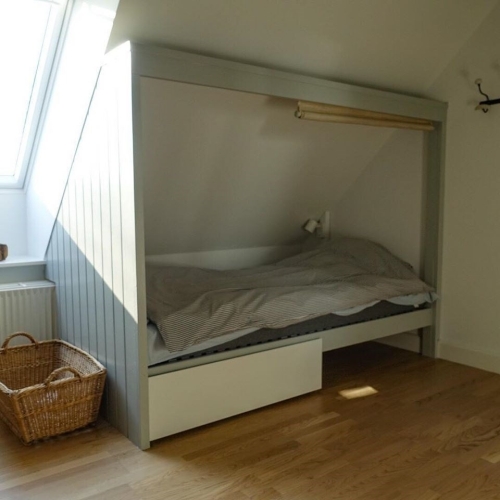 Inde: Alle Vends motorik og naturskoles kursister bor sammen i hus, hvor der ikke bor højskole elever. I dette hus er der 1 , 2 og 3 personers værelser.